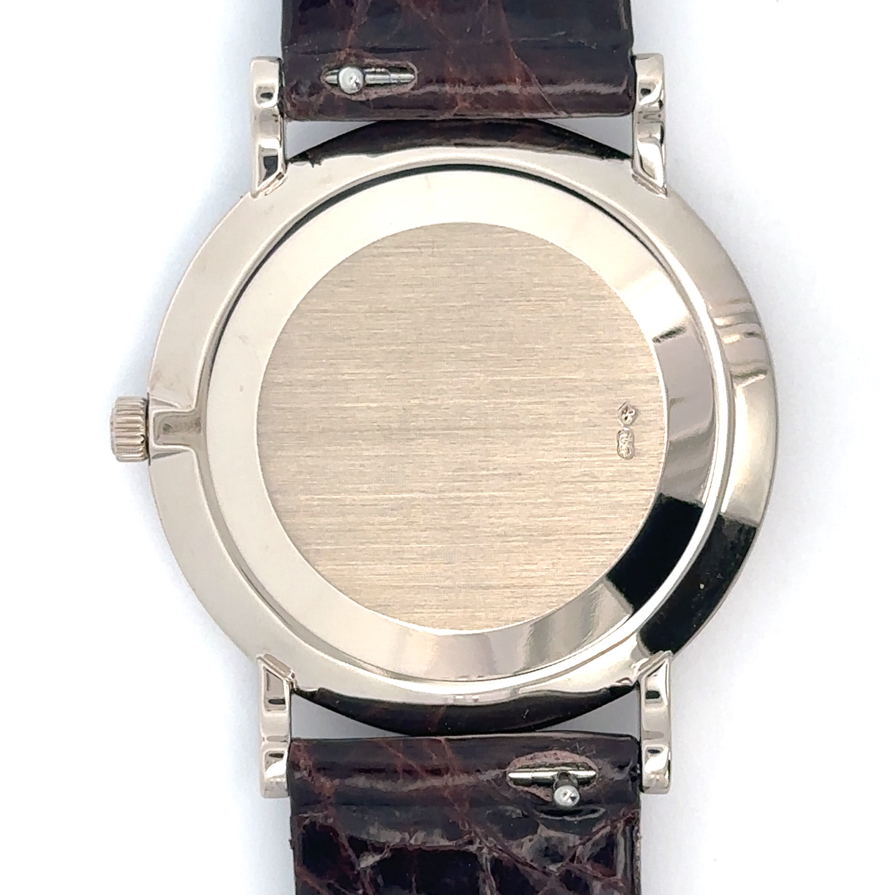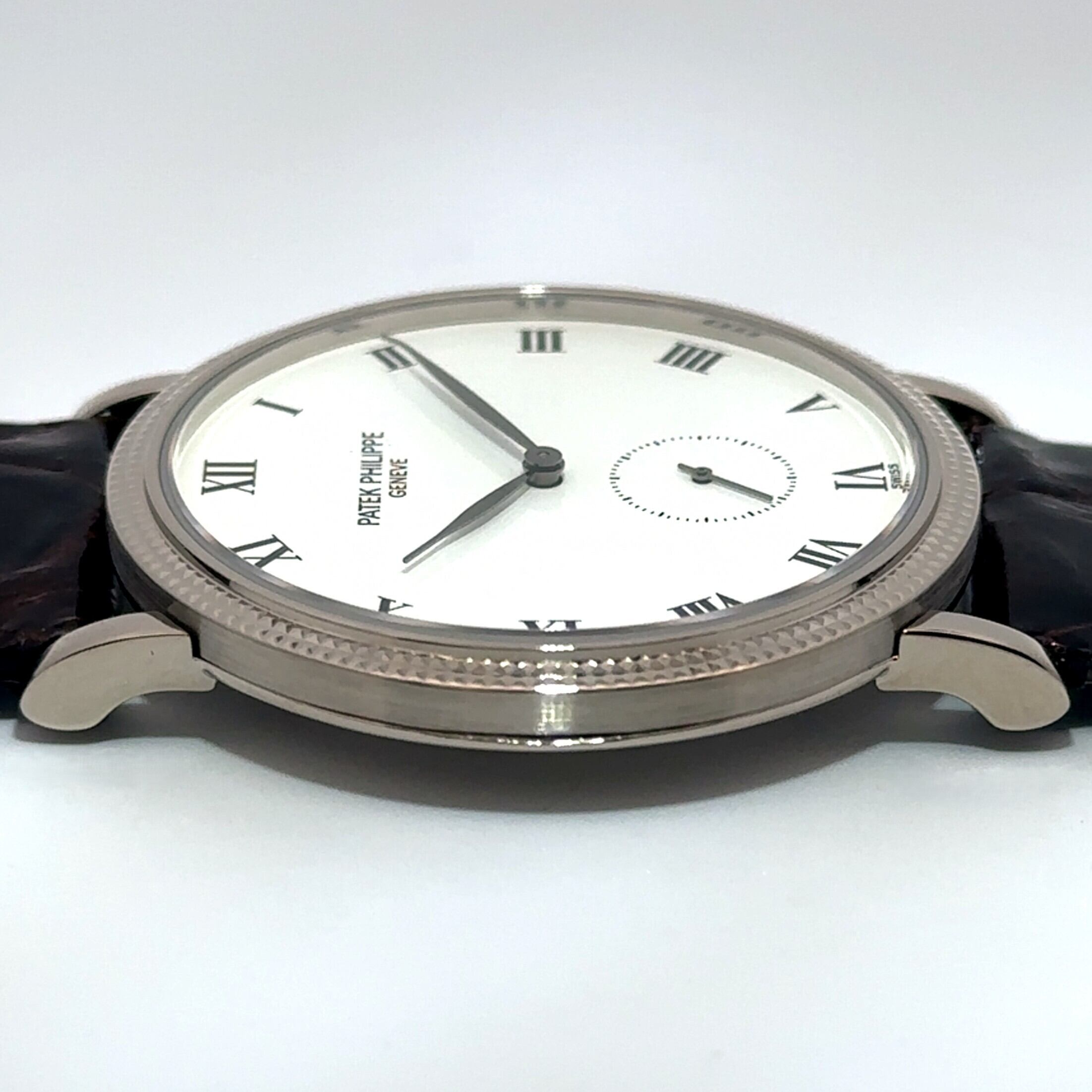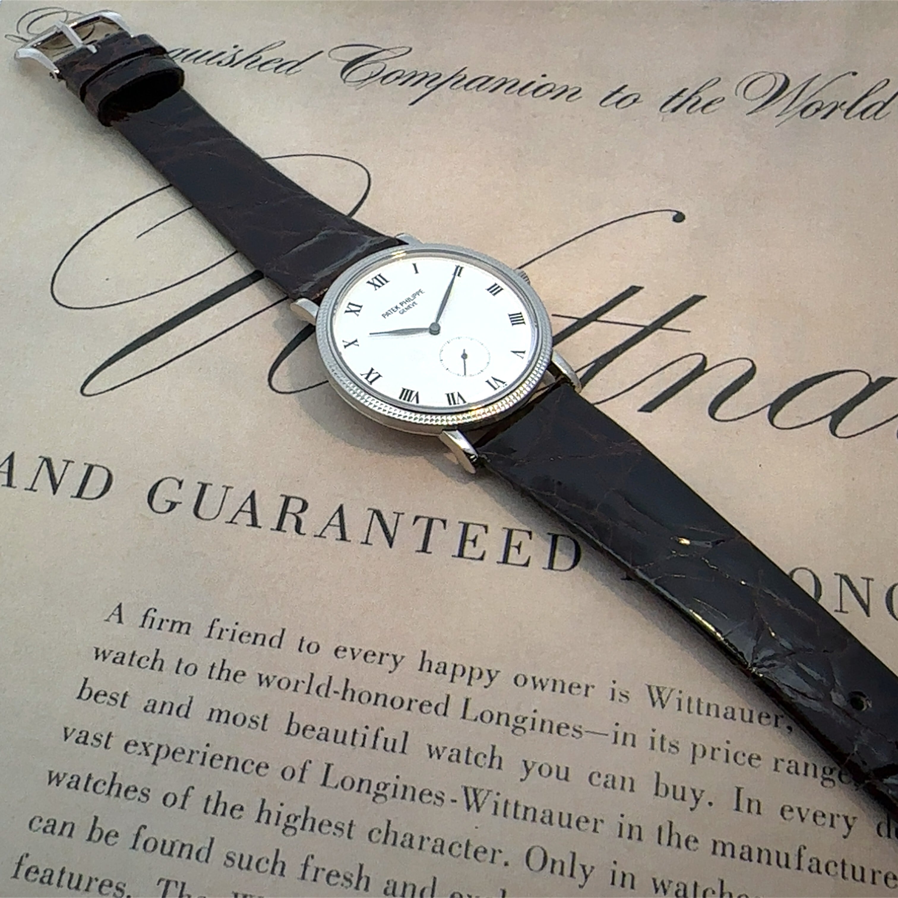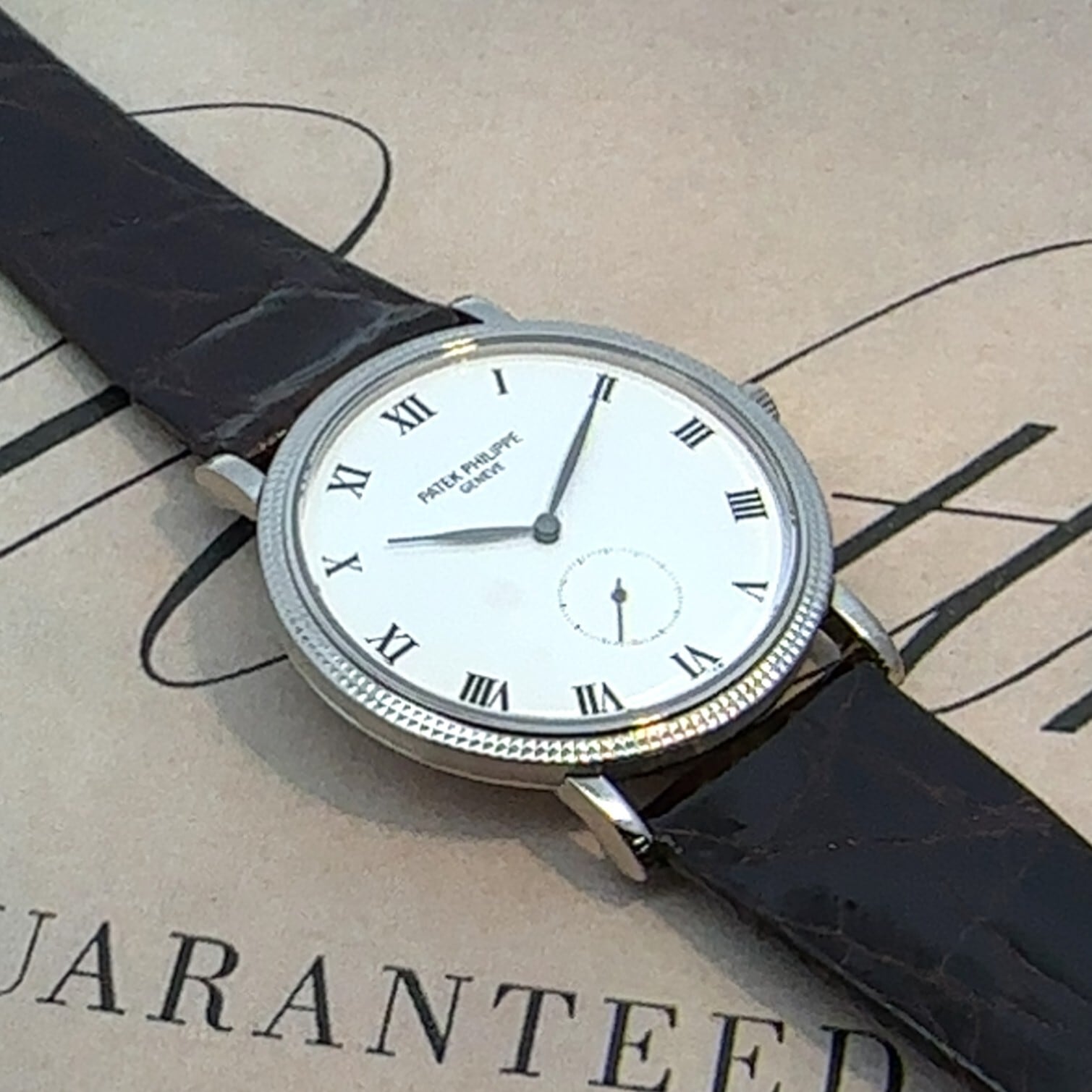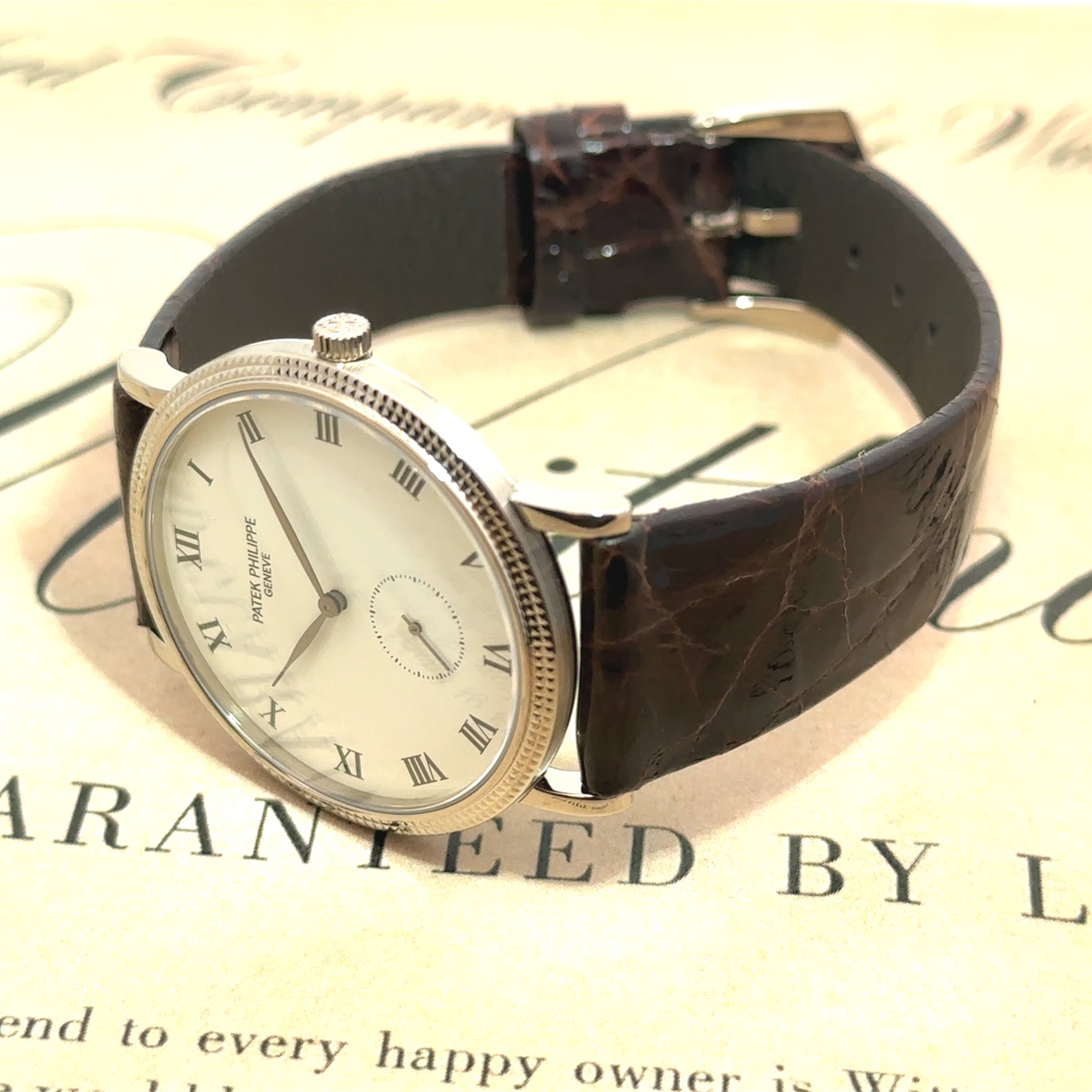 パテックフィリップのカラトラバは、エレガンスとクラシックなデザインが融合したタイムピースです。この時計は、ホワイトゴールドのケースと革のストラップを特徴とし、どんなシーンでも洗練されたスタイルを演出します。