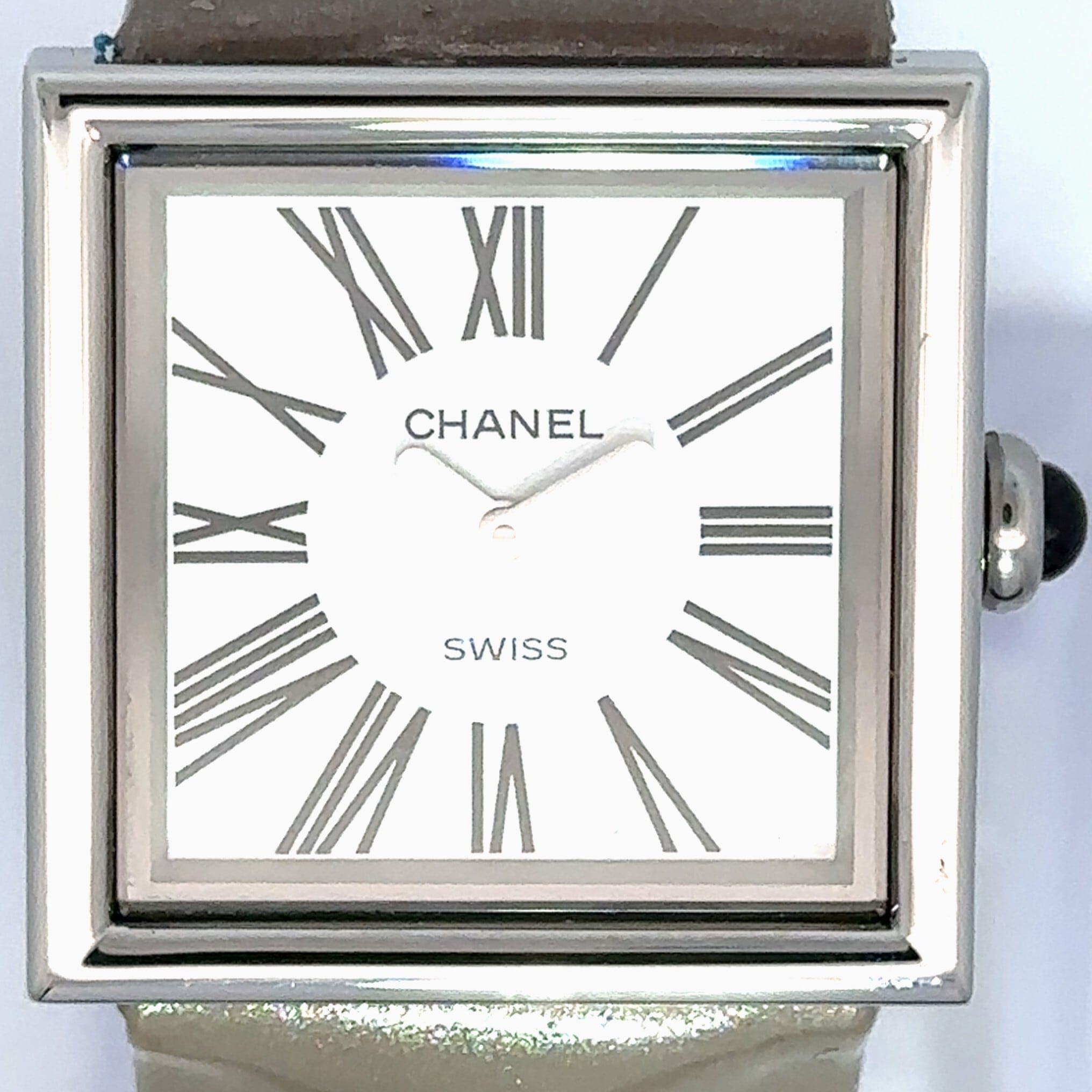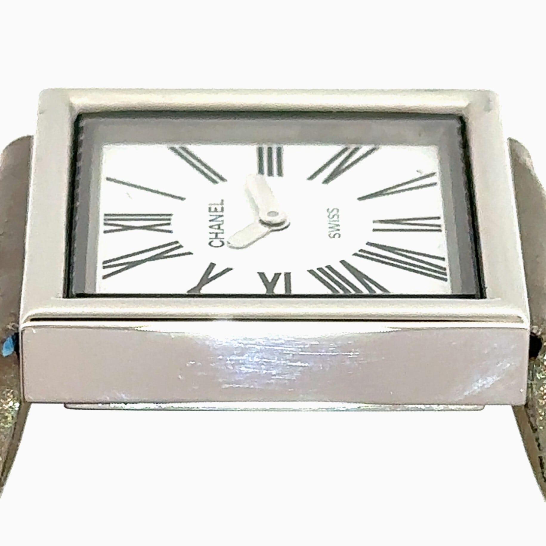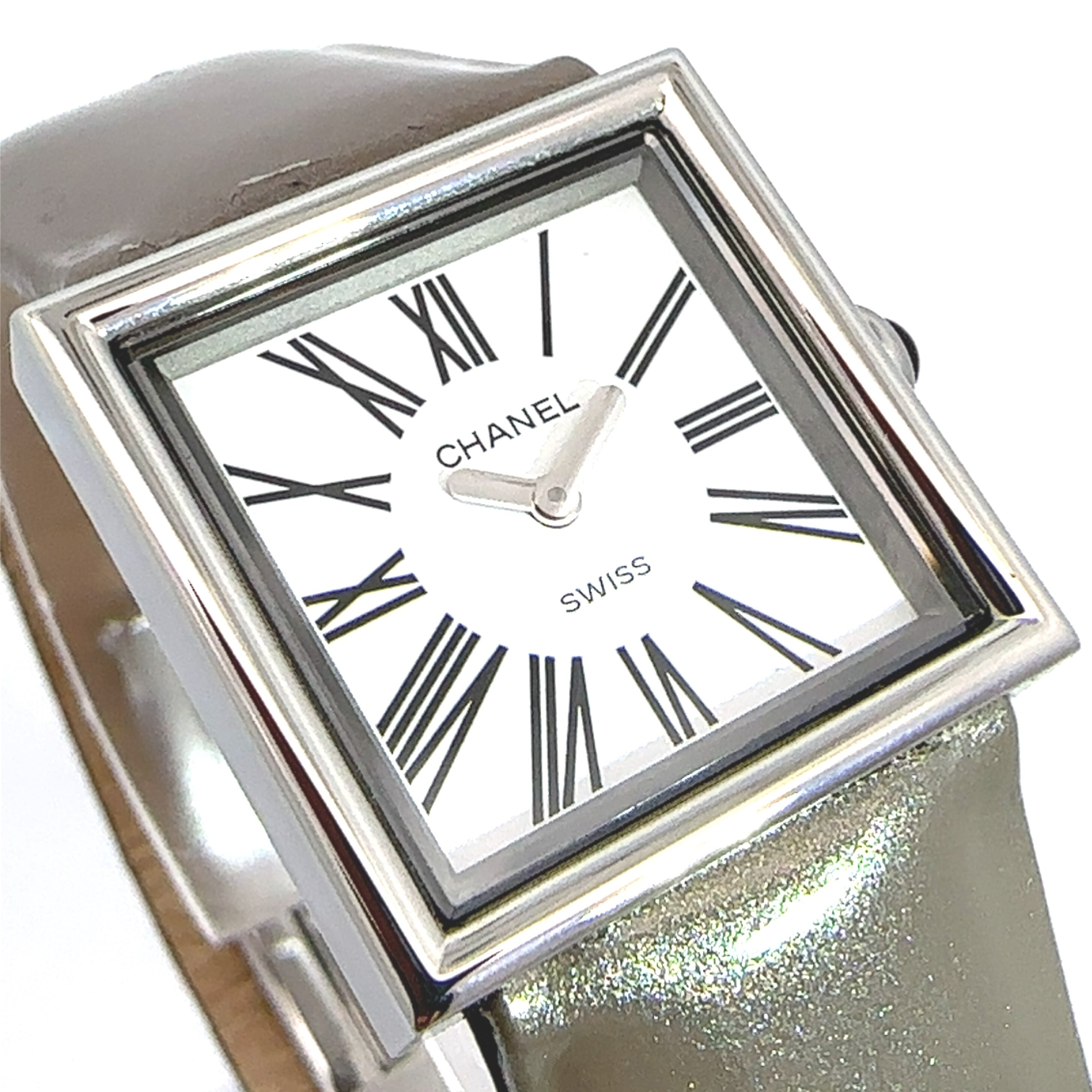 こちらは、シャネルの「マドモアゼル」というモデルの腕時計。シンプルで上品なデザインが魅力で、四角いフェイスにローマ数字のインデックスがクラシカルな雰囲気を演出してくれます。