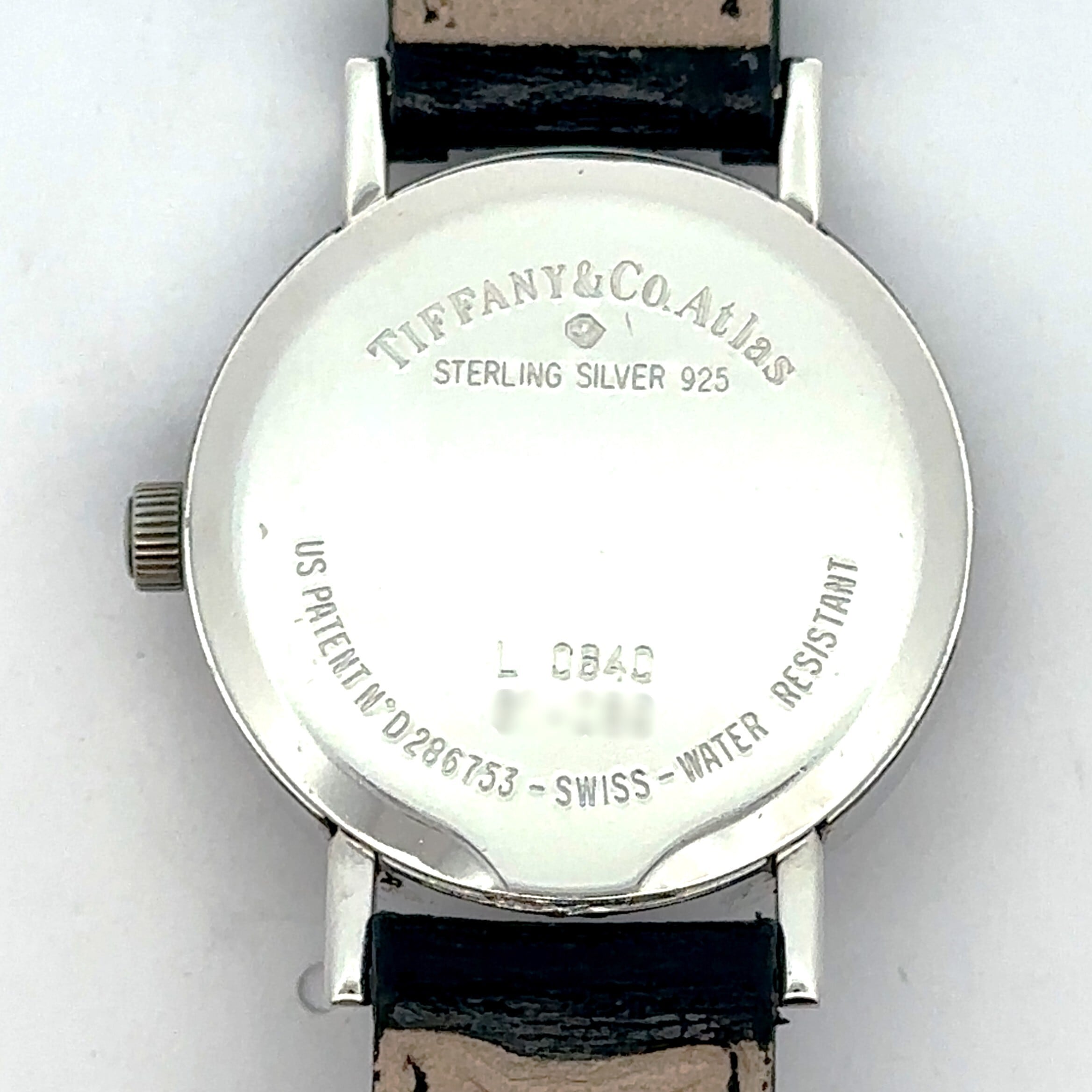 特徴的なローマ数字が刻まれたシルバーケースは、クラシカルでありながらモダンな印象を与え、ホワイトの文字盤に控えめに配置された「Tiffany & Co.」のロゴが上品さを際立たせます。ブラックレザーのストラップは高級感と快適な装着感を両立し、手元を美しく演出します。