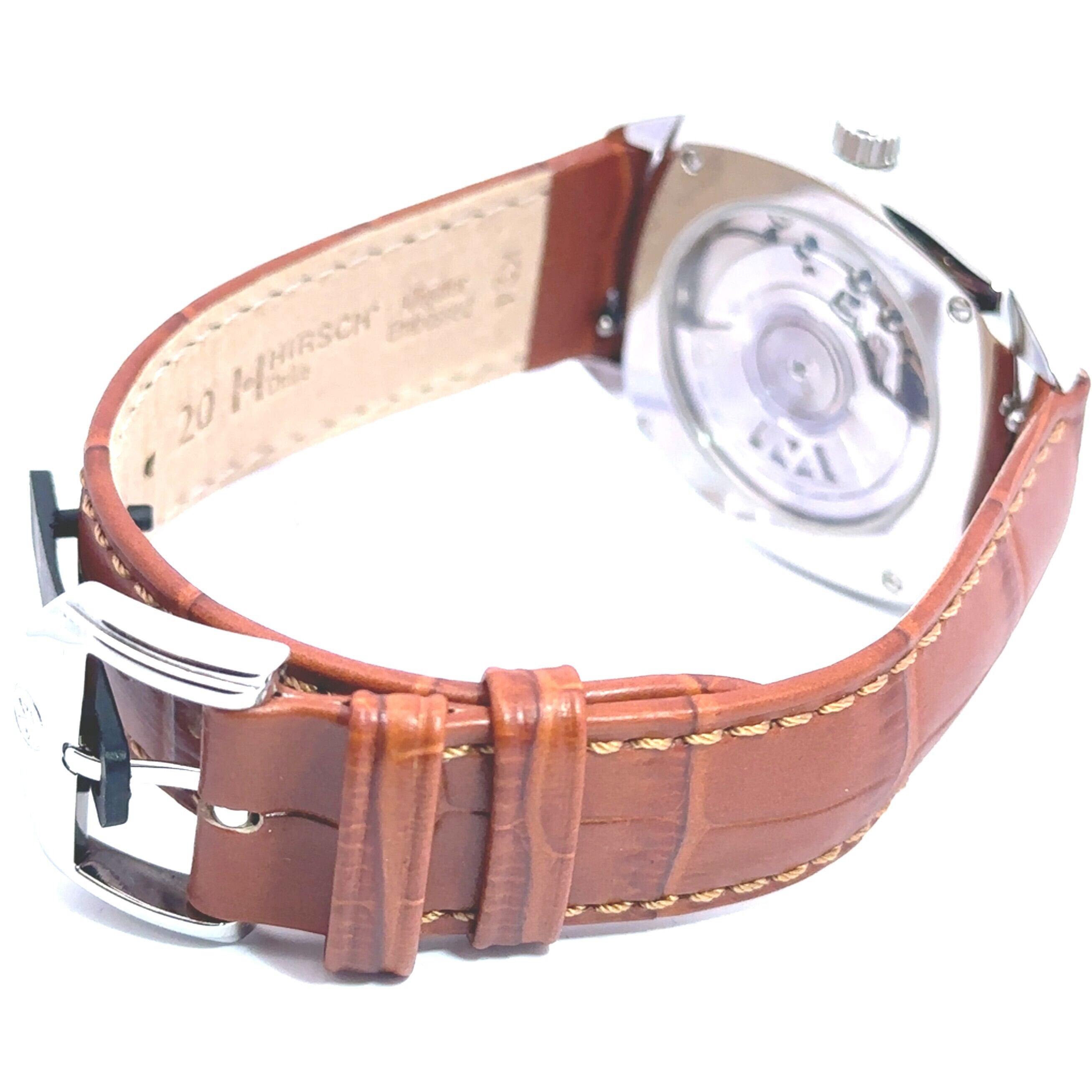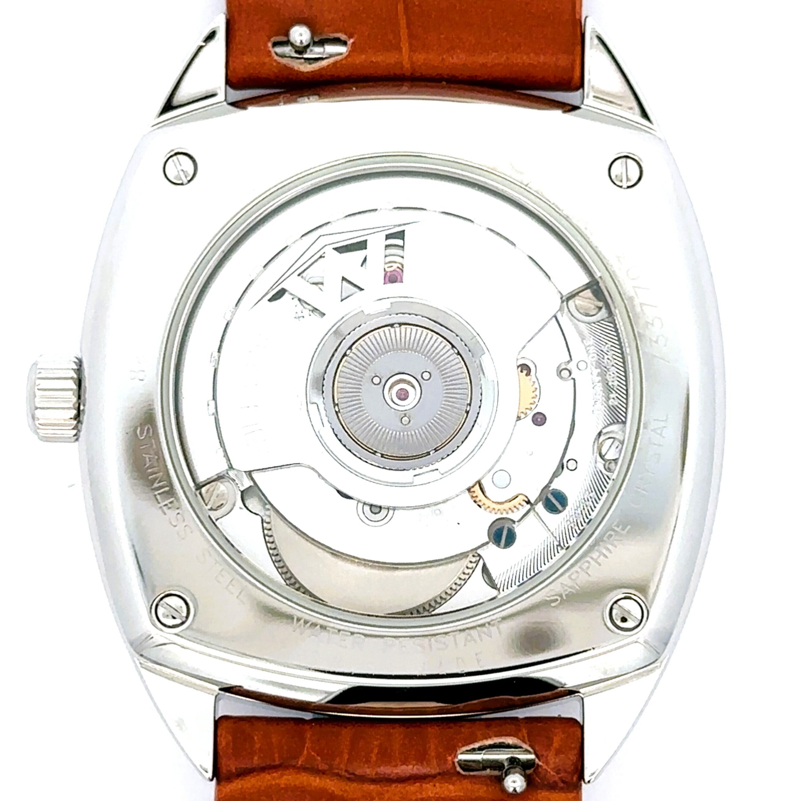 白い文字盤には、見やすいアラビア数字が並んでいて、時間がパッとわかるのが嬉しいポイント。ケースはステンレススチール製で、傷がつきにくくて長持ち。しかも、自動巻きタイプなので、電池交換の手間もなし!腕に着けているだけで、自然に動いてくれるんです。
