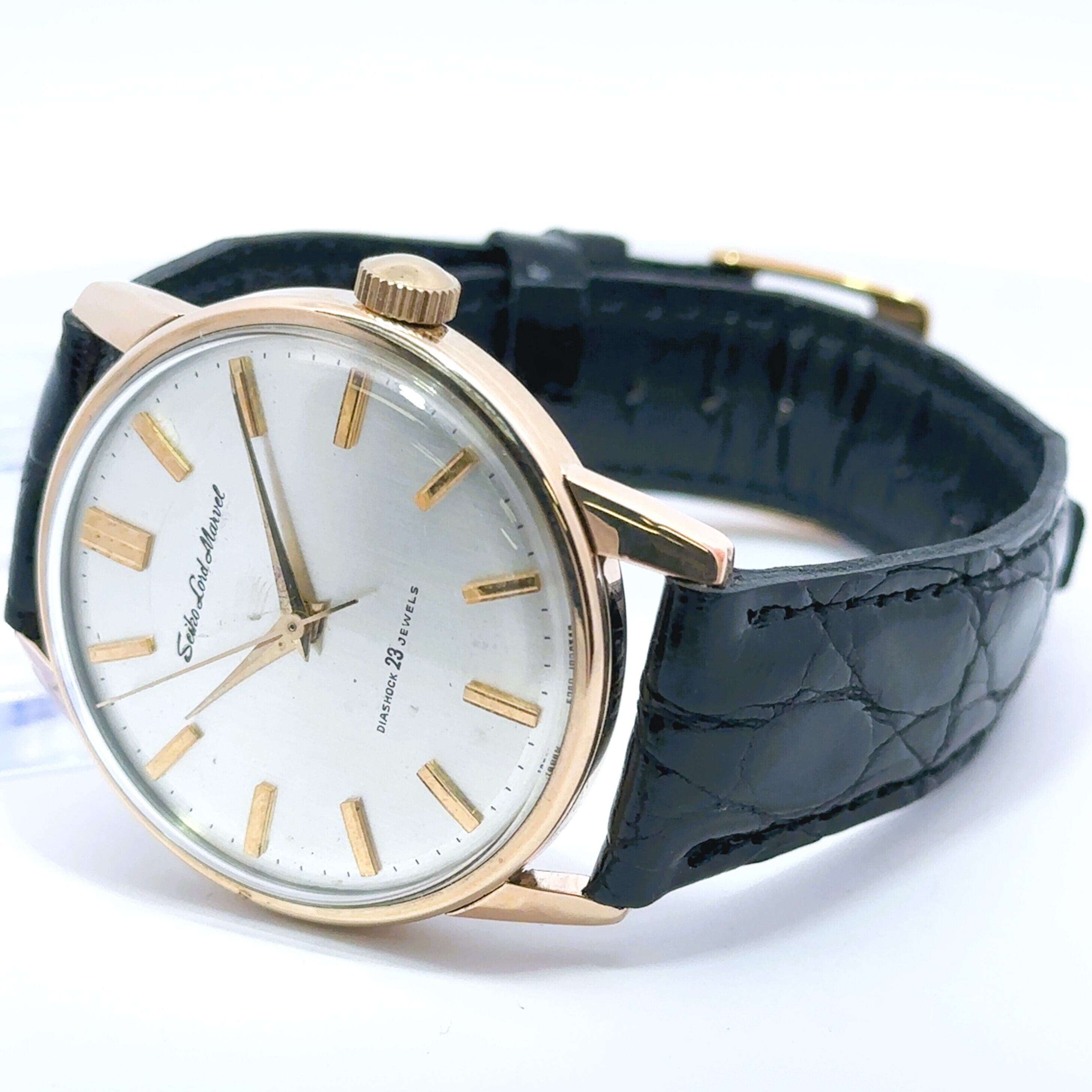 この「セイコー ロードマーベル」は、1960〜70年代に登場した国産アンティークウォッチ。金色のケースに白い文字盤、そしてシンプルで上品なデザインが特徴です。文字盤には「Diashock 23 Jewels」の表記があり、これは高品質な機械式ムーブメントを使っている証。手巻き式なので、毎日ゼンマイを巻くひと手間も、愛着が湧くポイントです。