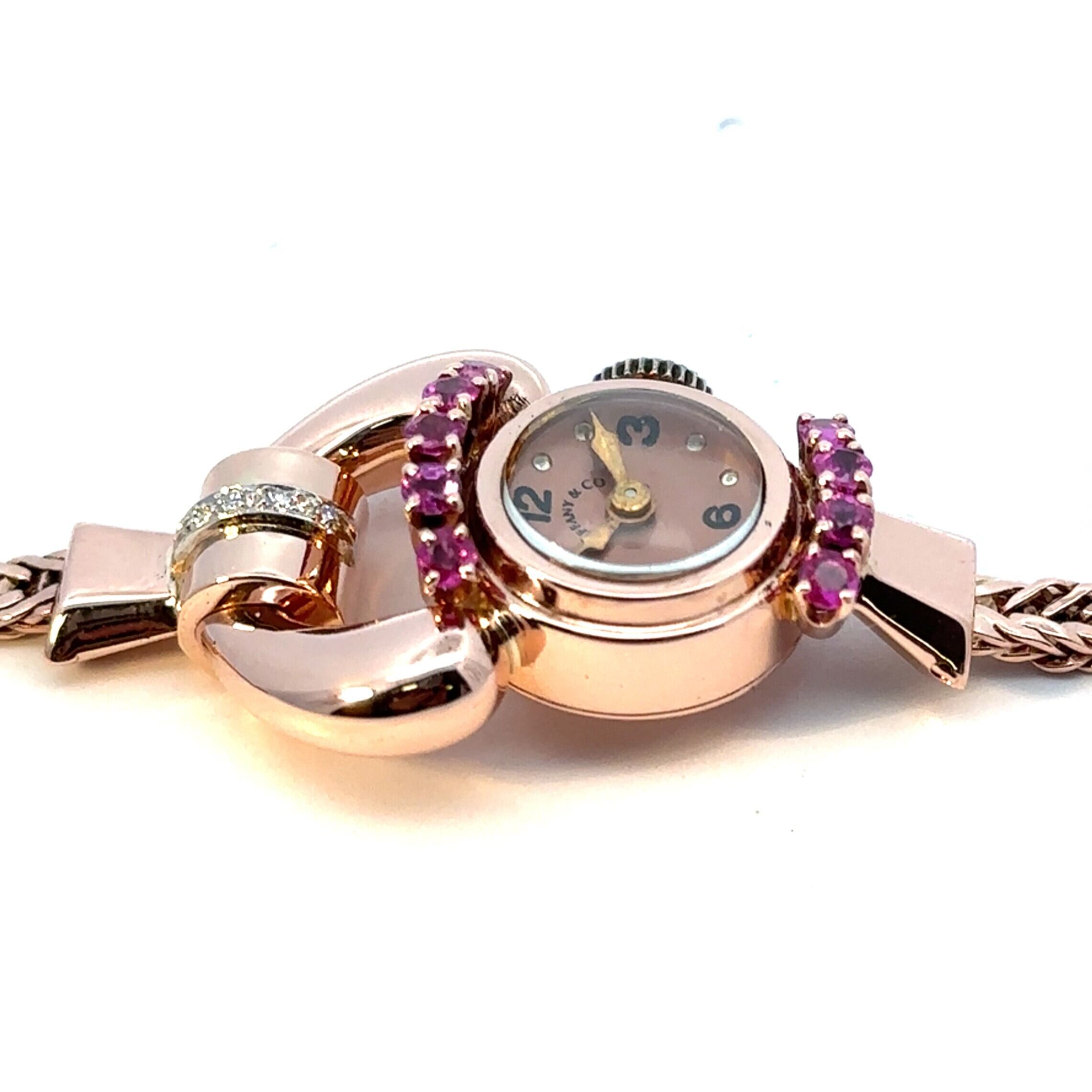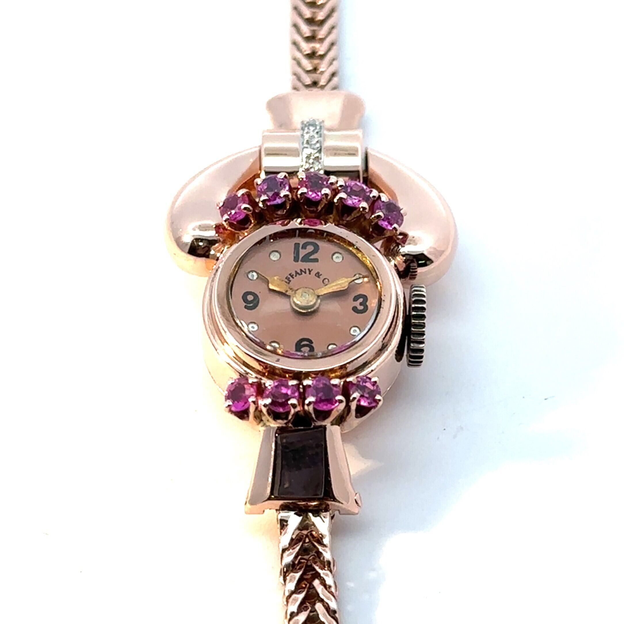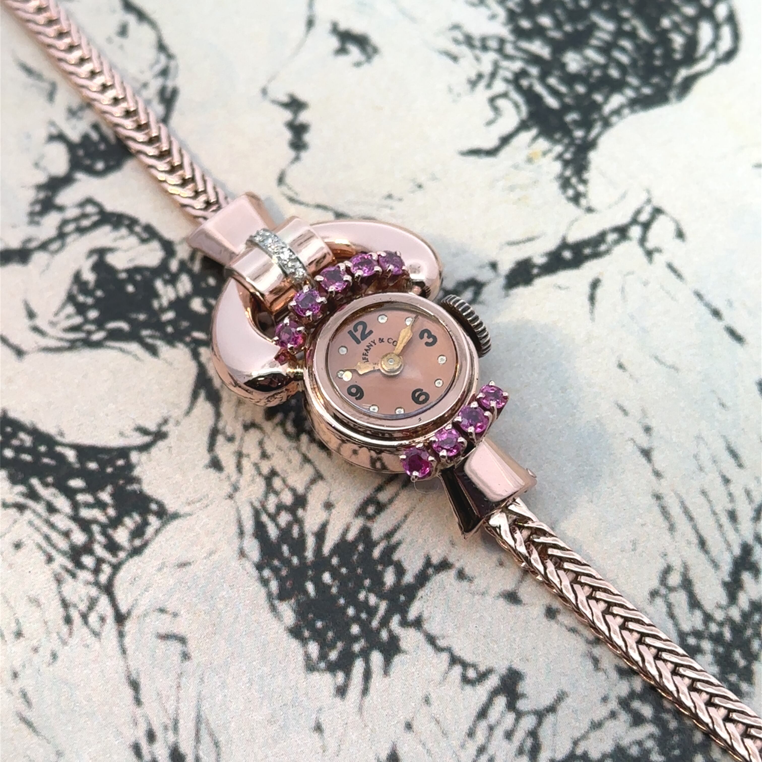 世界中で愛されるジュエリーブランド「Tiffany & Co.」から、まるでブレスレットのように華やかなアンティークウォッチが登場。ピンクゴールドのケースに、キラキラ輝くピンクストーンとダイヤモンドがあしらわれたデザインは、手元を一瞬で特別にしてくれるアイテムです。小さめのフェイスが女性らしく、時計というよりアクセサリー感覚で楽しめます。