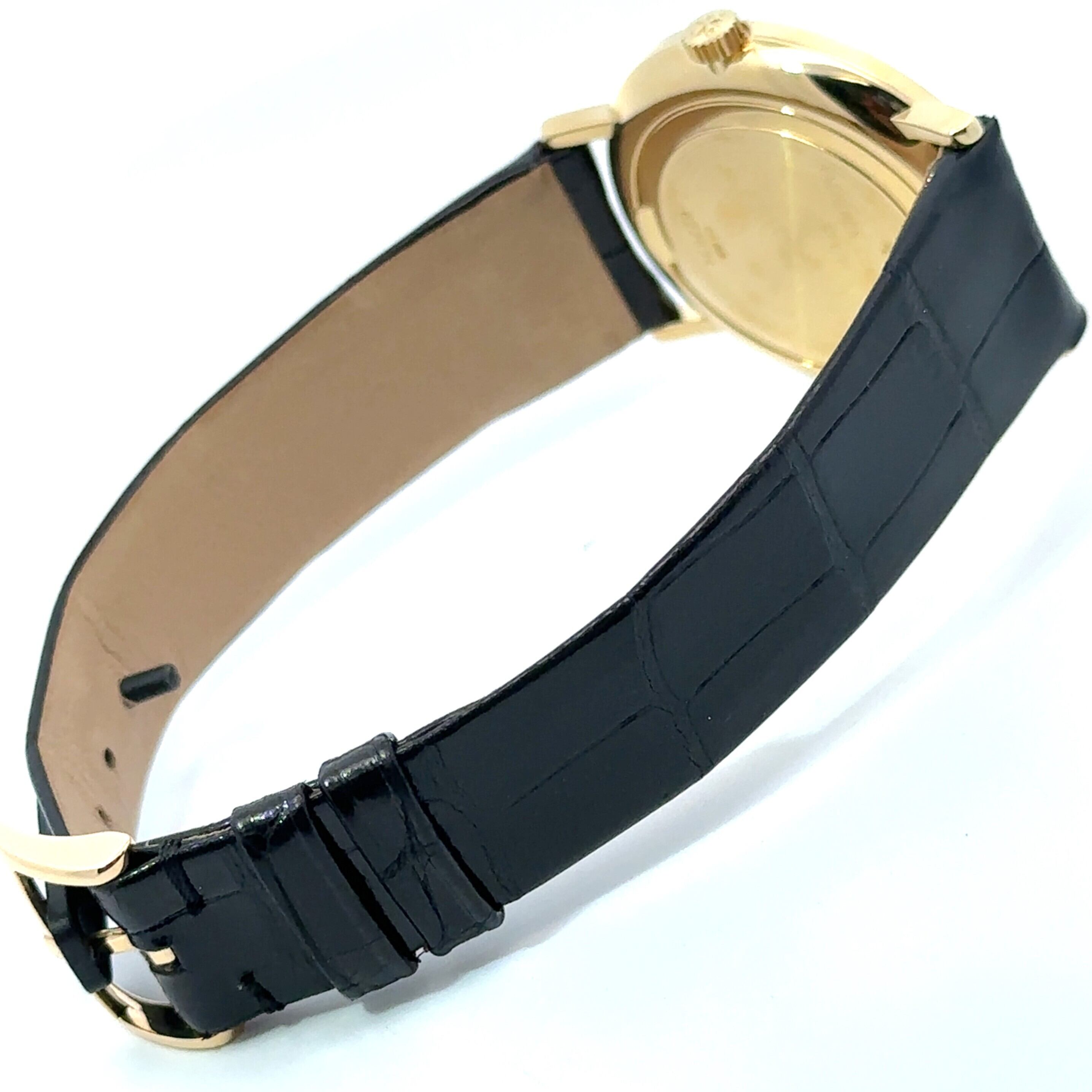 ヴァシュロン・コンスタンタン《エッセンシャル》は、シンプルな美しさの中に確かな存在感が宿るクラシックな一本です。落ち着いたゴールドケースに、すっきりと並ぶローマンインデックス、そして柔らかい光をまとった文字盤が組み合わさり、手元に上質な雰囲気を添えてくれます。ブラックレザーベルトが全体をほどよく引き締め、控えめでありながら“いい時計”ならではの気品を感じさせるデザインです。