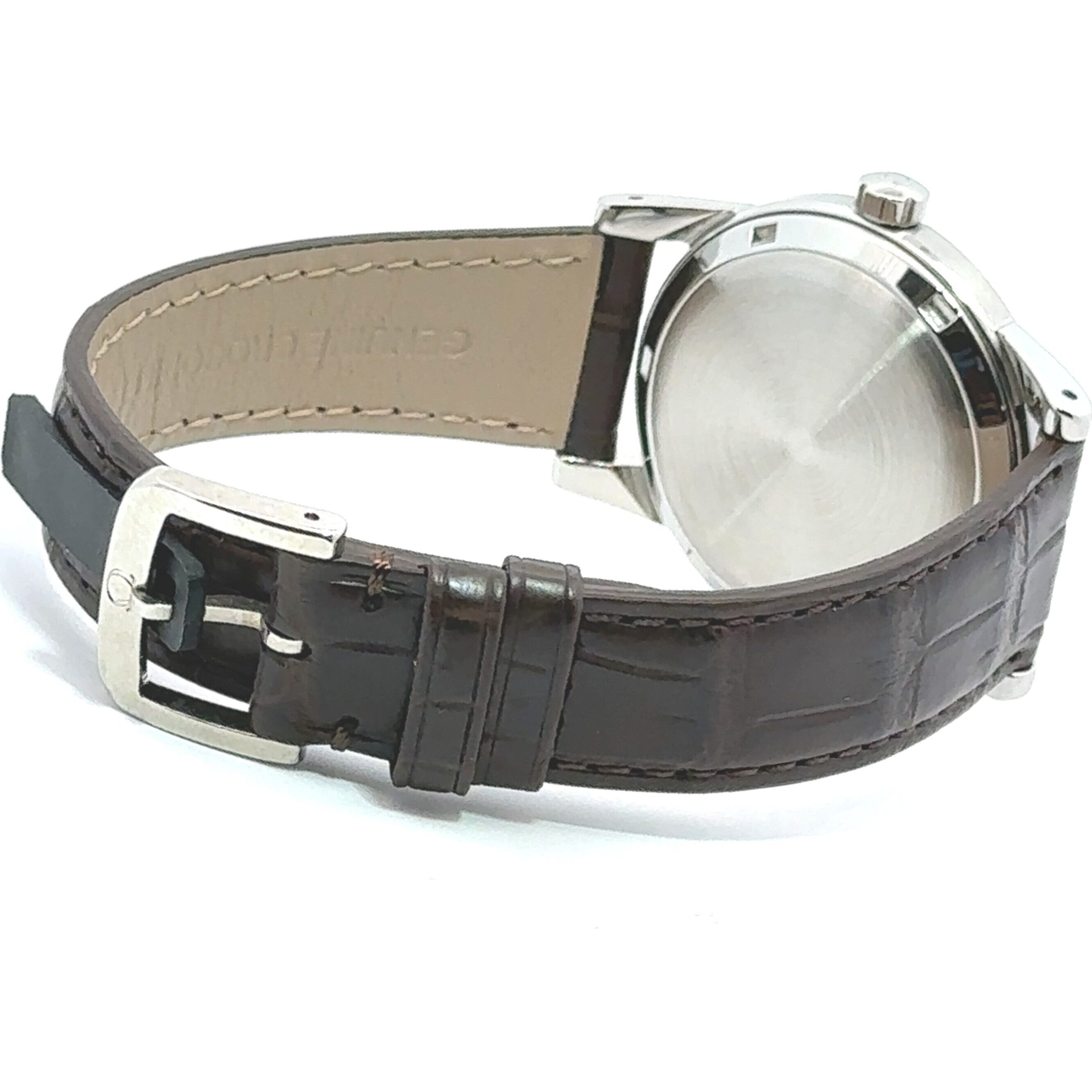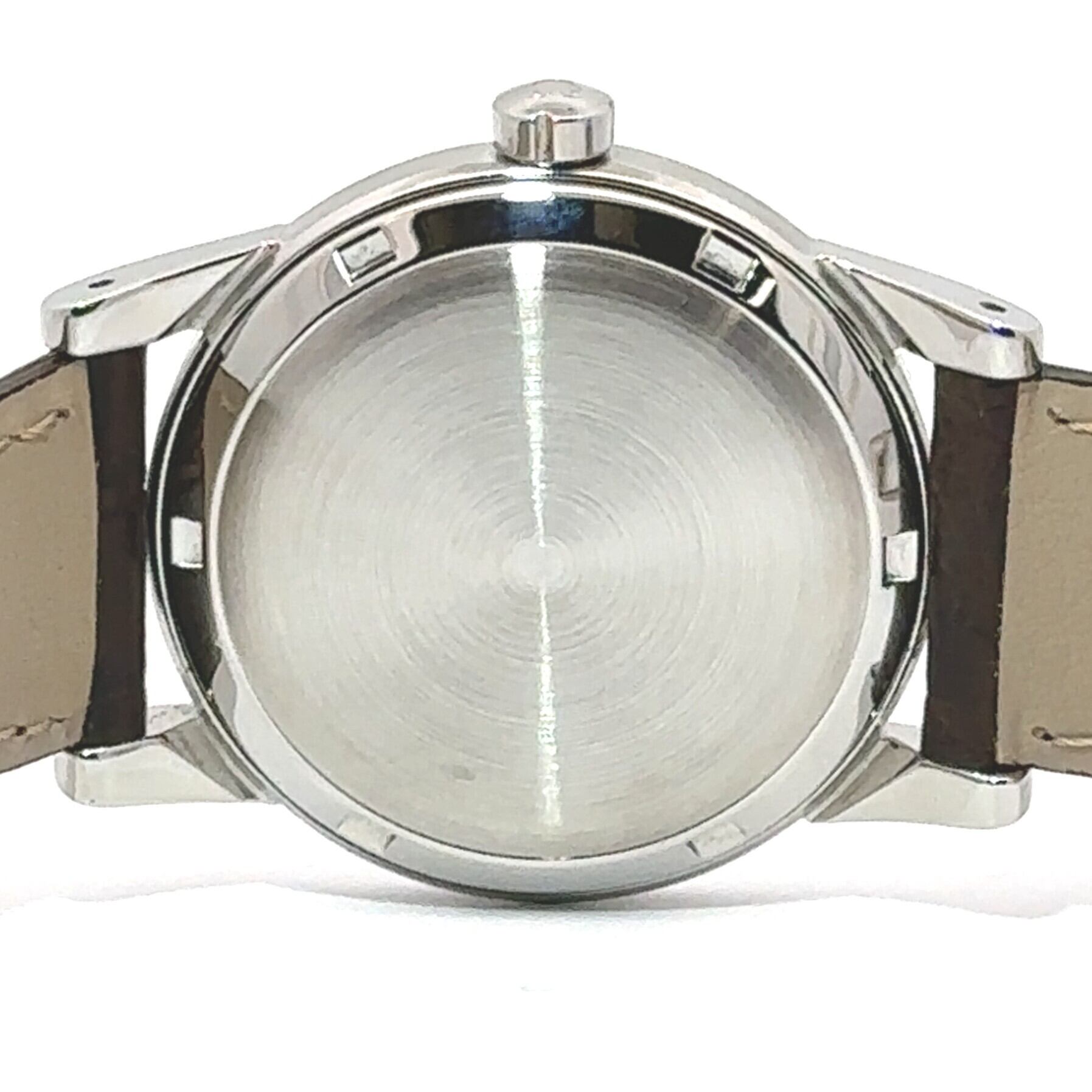 深みのあるブラウンレザーベルトは、時計全体の落ち着いた印象をさらに引き立て、手に取った瞬間から上品な大人の雰囲気を演出。柔らかく腕に馴染む革の質感は、使い込むほどに味わいが増し、自分だけの一本へと育っていきます。