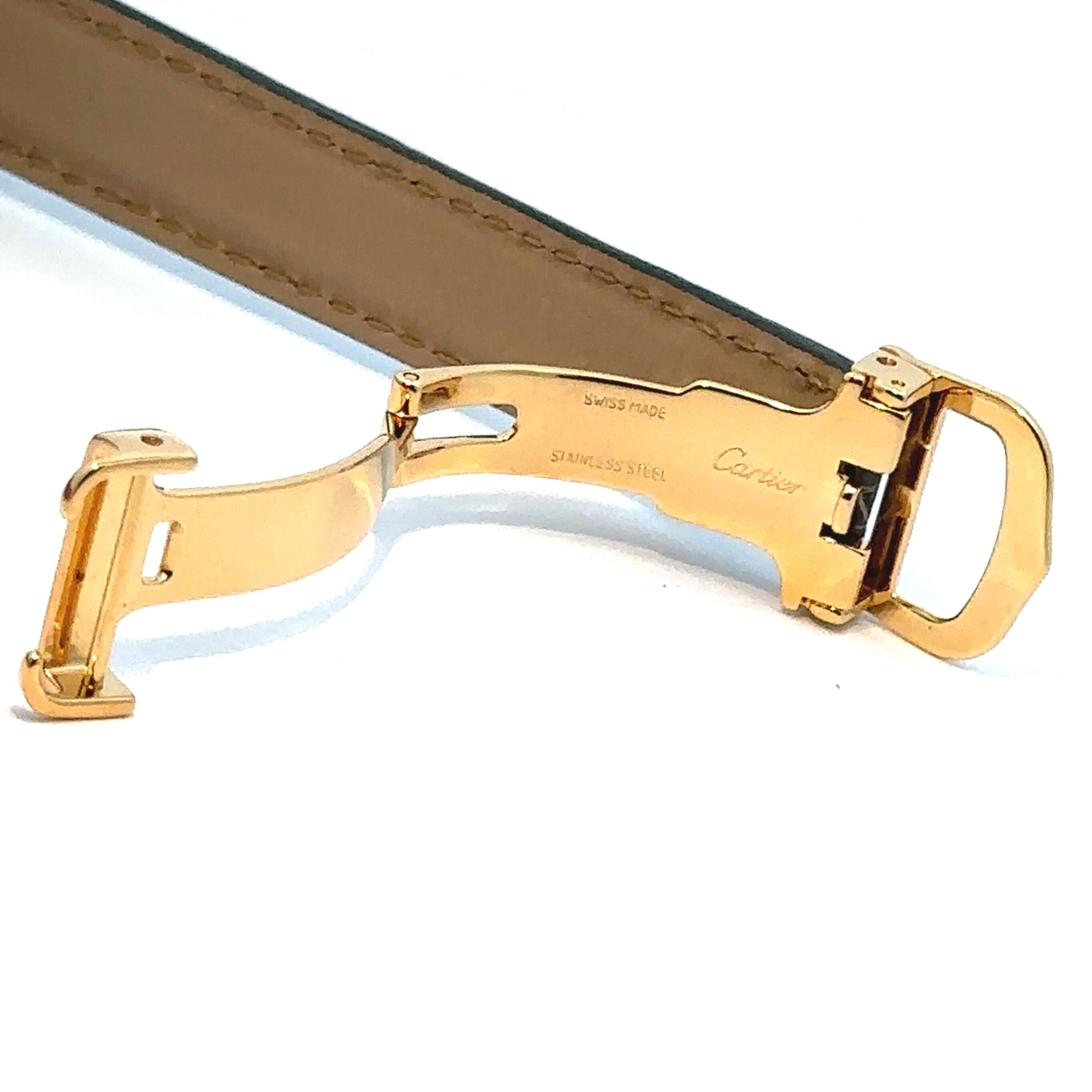 華奢でシンプルな印象なので、シャツやニットなどのきれいめカジュアルはもちろん、ジャケットやワンピースなど少しきちんとしたスタイルにもよく合います。革ベルト仕様のためアクセサリー感覚で取り入れやすく、手元をさりげなく上品に見せてくれるのもポイント。流行に左右されにくく、長く愛用できるカルティエらしいクラシックな一本です。
