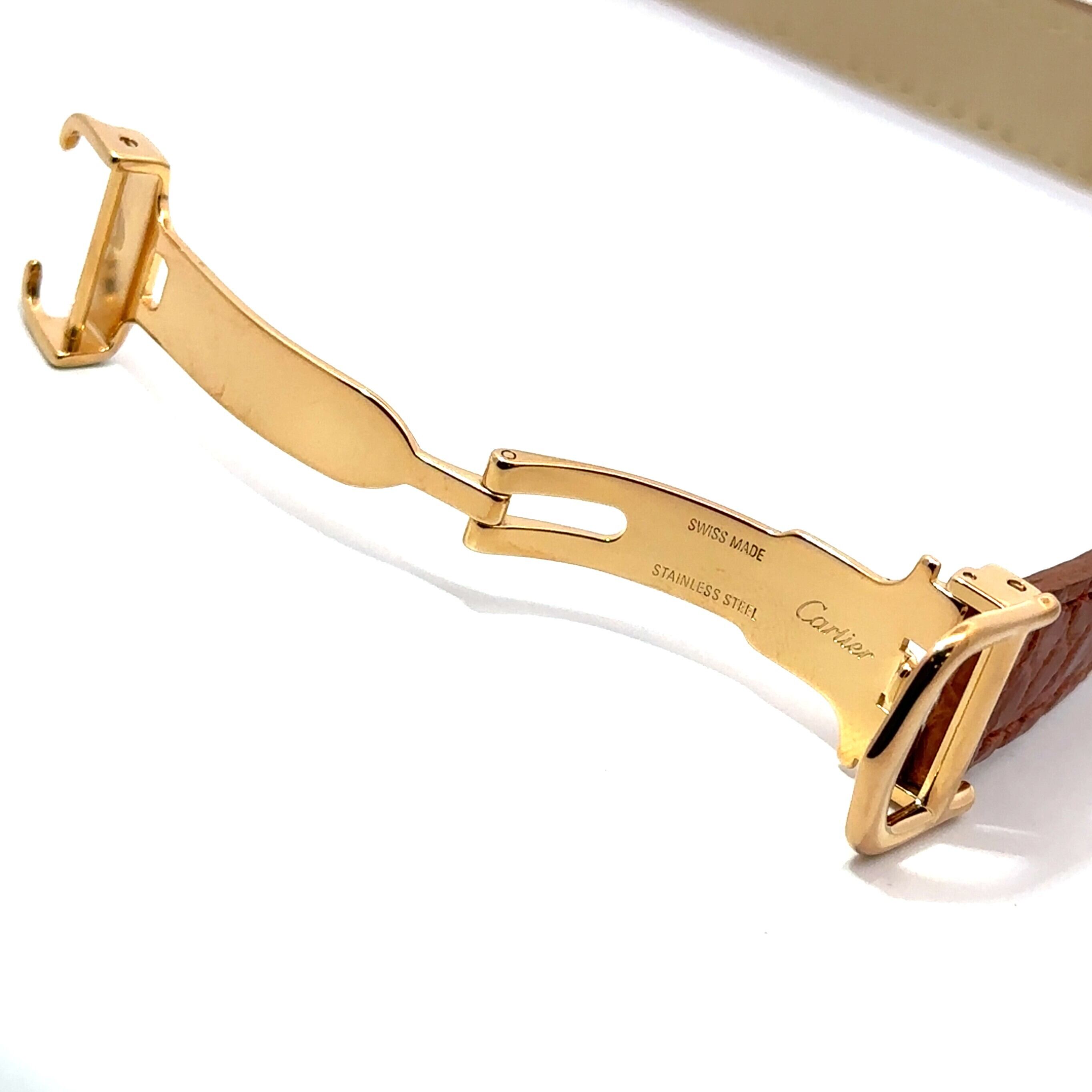 ゴールドカラーのケースとレザーベルトの組み合わせが手元をやさしく演出し、シンプルながらもカルティエらしい存在感があります。派手すぎないため、日常使いはもちろん、少しきちんとした場面にも自然になじみます。