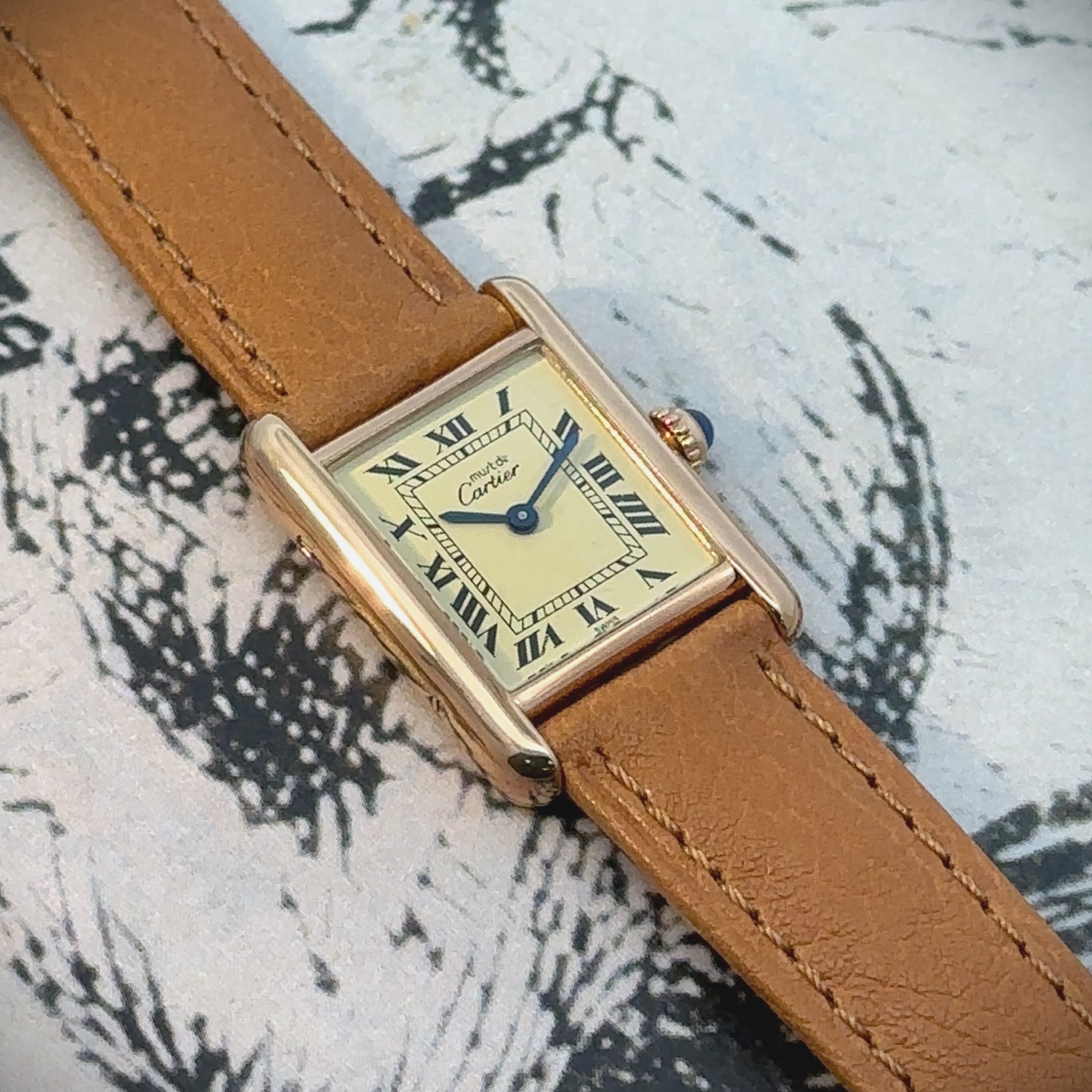 カルティエを代表する名作、「マストタンク」の腕時計です。